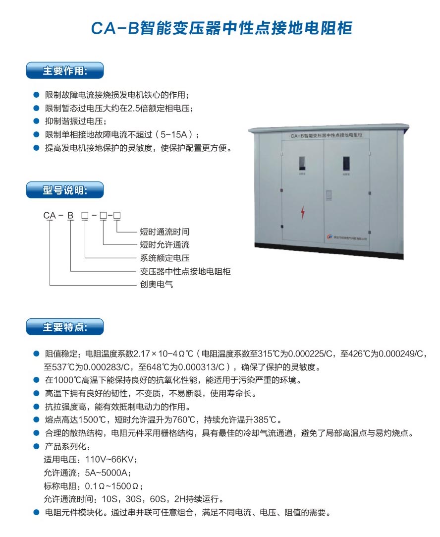 CA-B智能變壓器中性點(diǎn)接地電阻柜